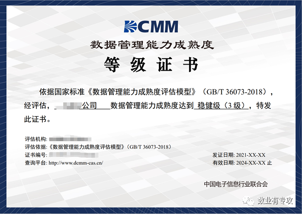 DCMM等级证书模板